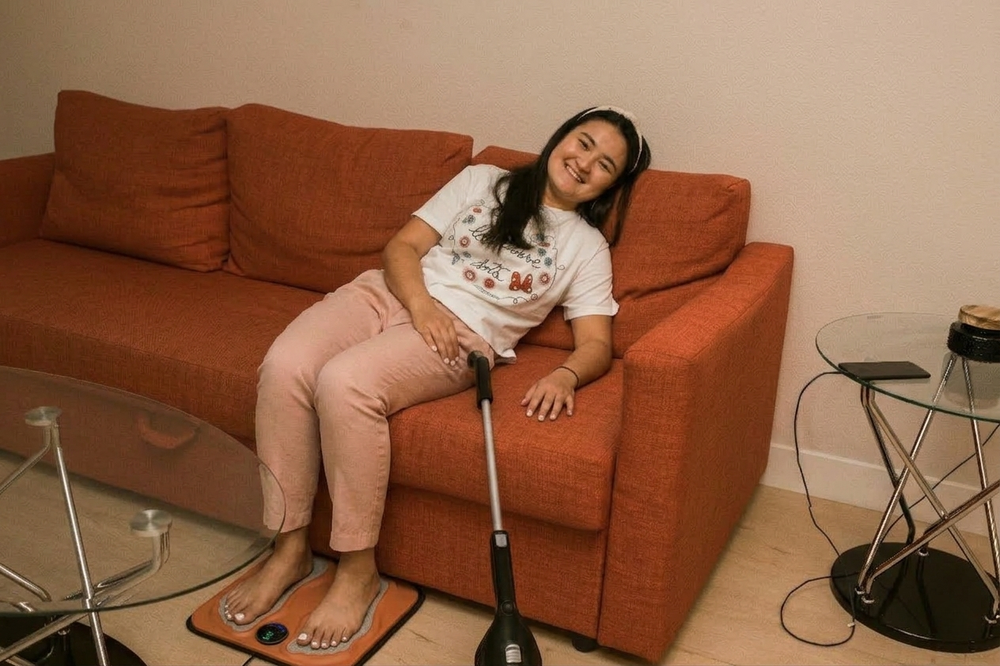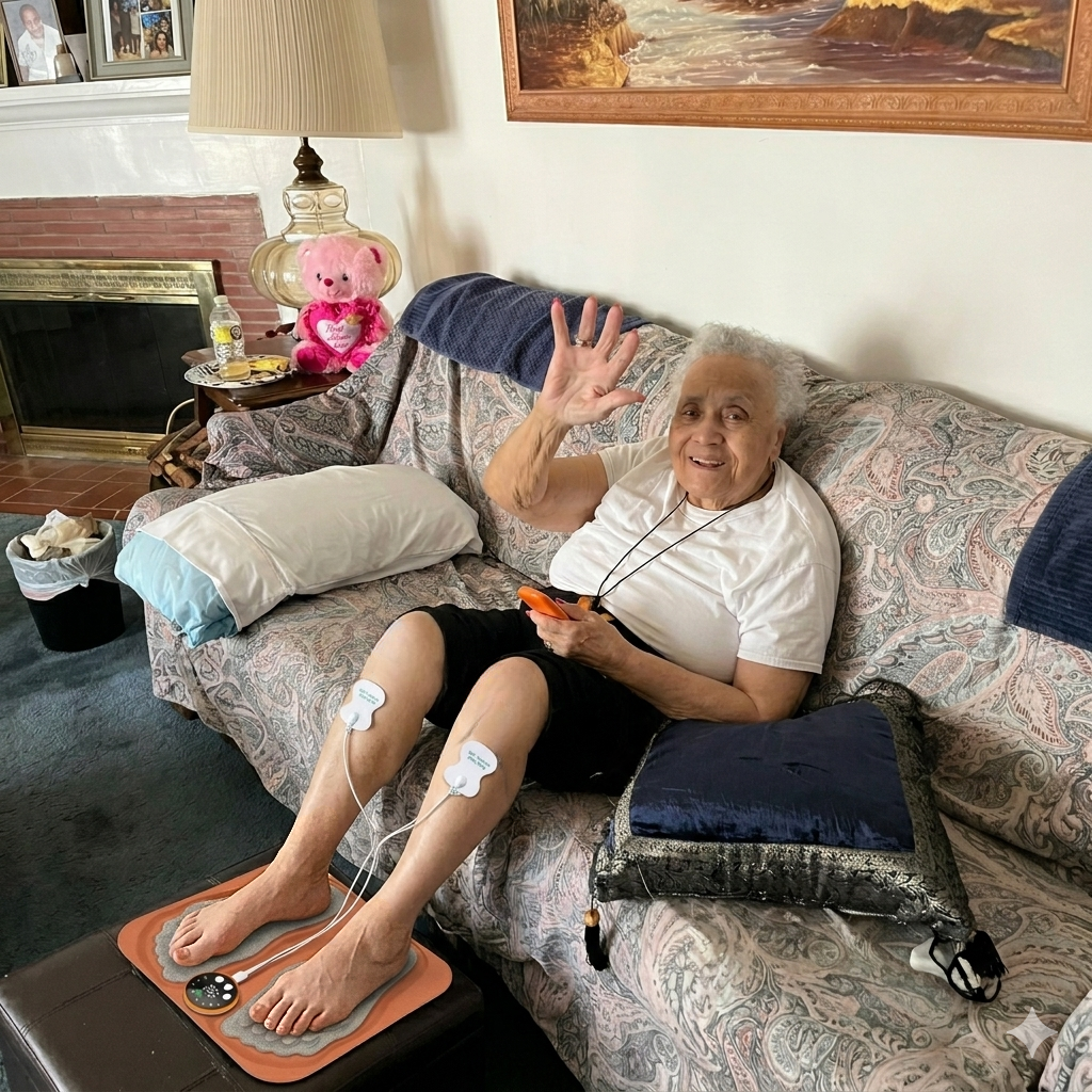 Now I do my session every single day right here on my couch. It's become my little daily ritual. I put my feet on the mat, turn it on, and just relax. Within a few weeks, my legs felt so much lighter, I started sleeping better, and I'm walking around so much more easily!