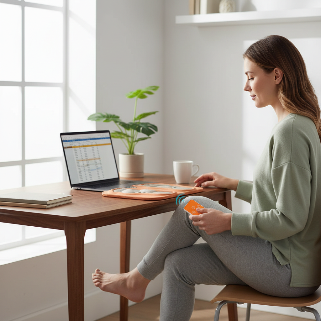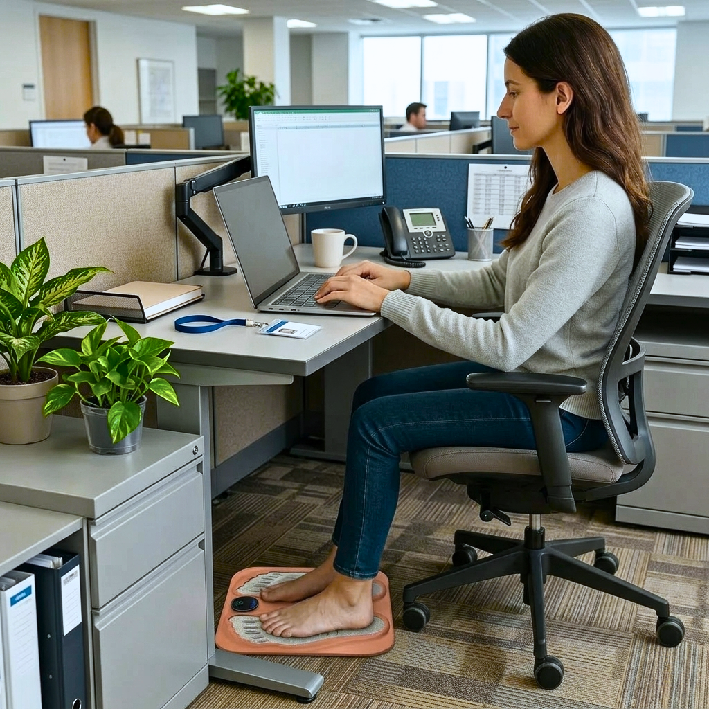 Now I just slip my feet onto the mat the moment I sit down, press the button, and keep working like nothing happened. It works quietly in the background while I answer emails, join meetings, write reports... and my feet? They feel AMAZING.